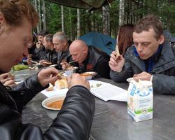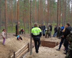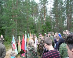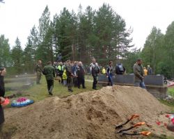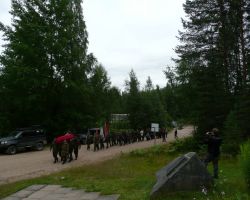 Традиционная ежегодная поездка в Карелию – к деревне Нурмолицы, где летом – осенью 1941 года воины-ополченцы Третьей “Фрунзенской” Дивизии Народного Ополчения г. Ленинграда оказали героическое сопротивление финским частям. У деревни Сяндеба, на мемориале, посвященном 3 ДНО, Торжественное захоронение останков воинов, найденных в результате поисковых работ поисковым отрядом “Малая Охта” (командир – В. А. Юхневич). После захоронения – посещение лагеря поисковиков, знакомство с находками, братская трапеза.